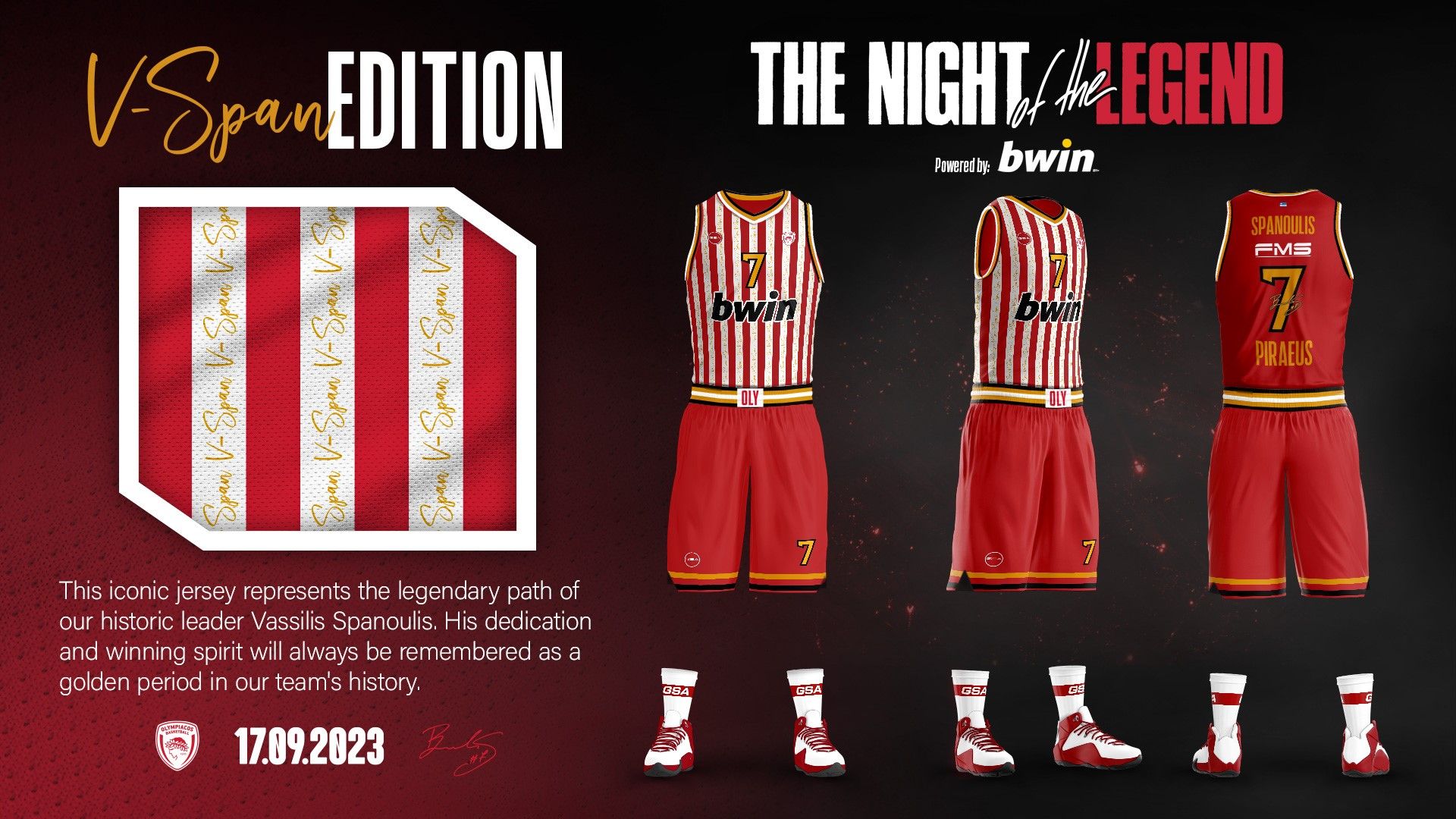 With 11 red stripes, as many as the years Spanoulis had played for Olympiacos, with golden details to showcase athletic greatness and the moniker (V Span) written on the while stripes, the jersey the ‘red & whites’ are going to be wearing on September 17 and only for that one time, will be worthy of his huge career.
